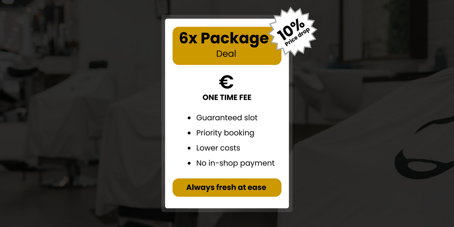 Purchase six cuts in advance, valid for an entire year, and enjoy up to six appointments booked ahead of time. You get the freedom to choose when to schedule, and with no need for in-shop payment, everything is taken care of upfront.